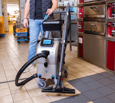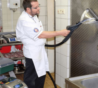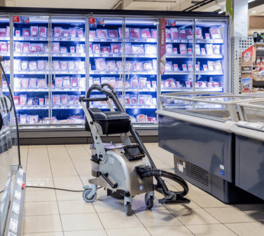 Versatility: From smooth stainless steel to porous concrete, the Drysteam machine can effectively clean and sanitize a wide range of surfaces found in supermarkets.